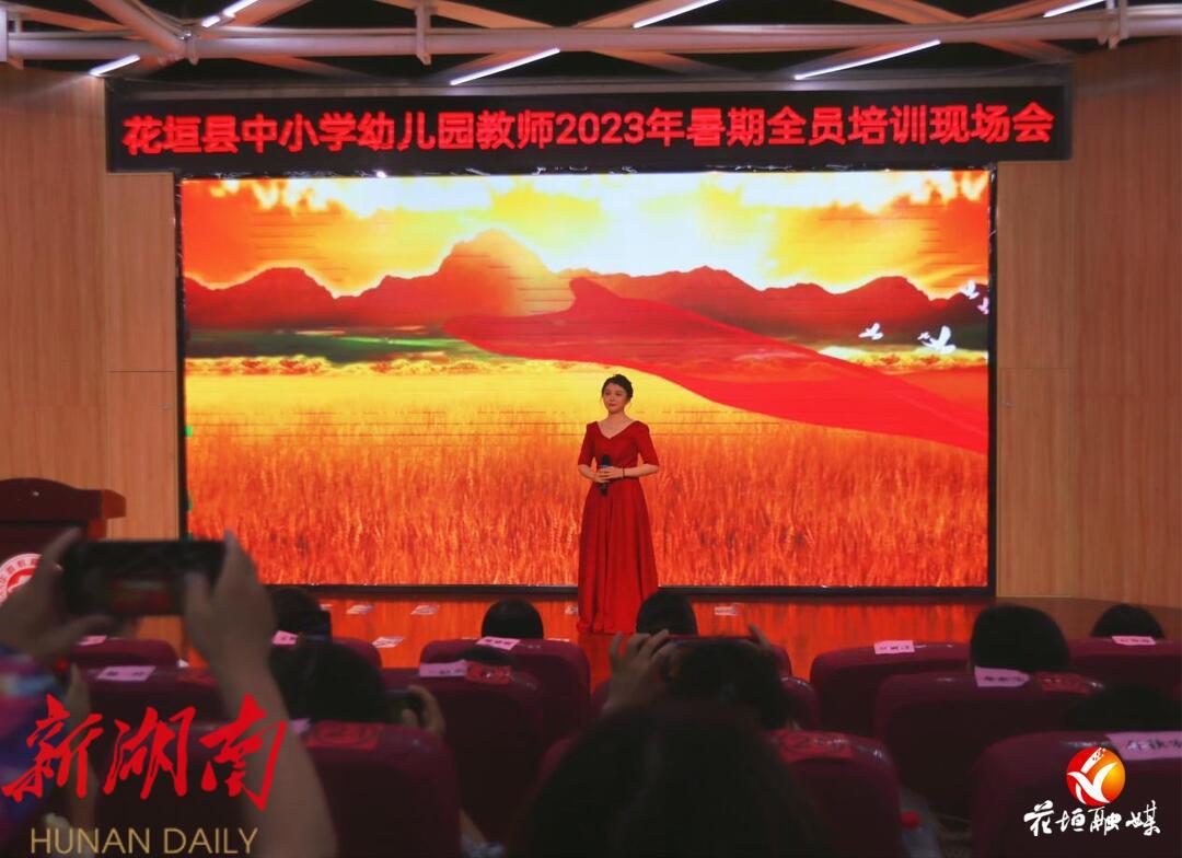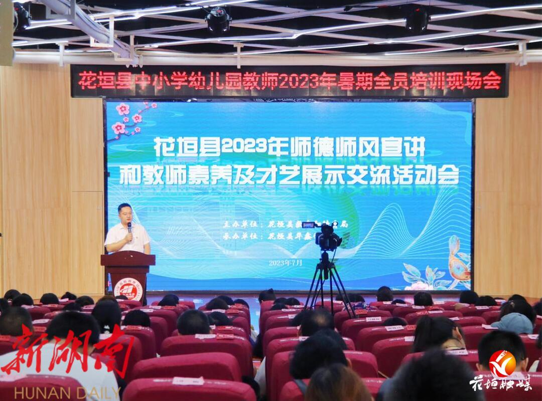 为了进一步贯彻党的教育方针,加强师德师风建设,努力培养和造就一支师德高尚的高素质专业化教师队伍,7月9日下午,花垣县2023年师德师风宣讲和教师素养及才艺展示交流活动在花垣华鑫学校举行。县教体局相关负责同志及花垣县中小学幼儿园教师2023年暑期全员培训班学员参加活动。