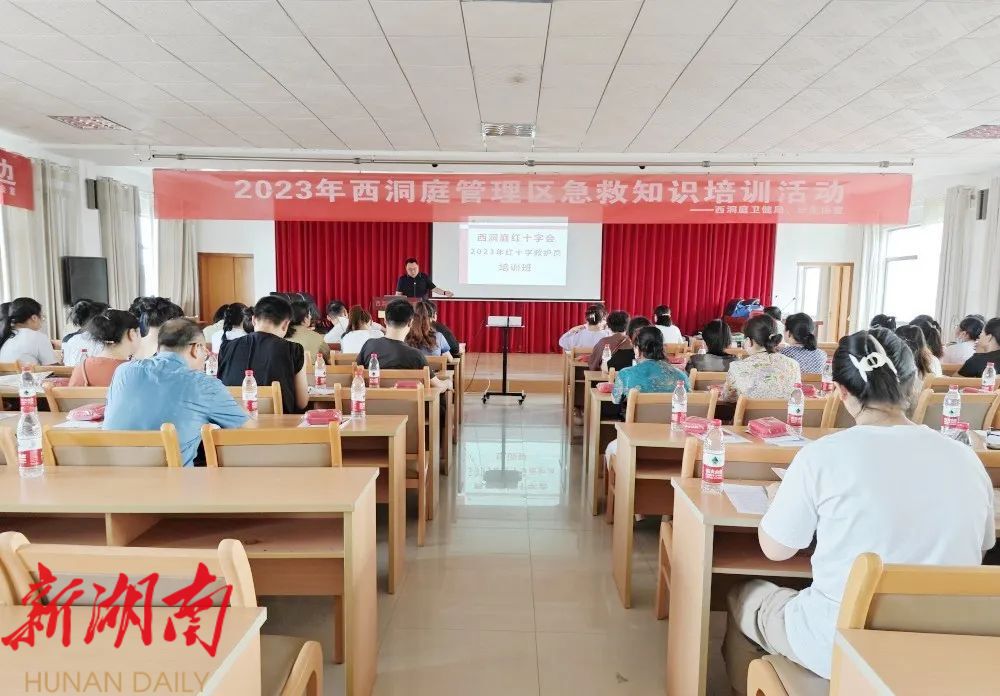 为进一步普及应急救护知识,强化应急救护能力,提升重点场所工作人员自救互救意识,助力“平安西洞庭”建设,7月7日上午,西洞庭管理区公共应急知识讲座在区人民医院五楼健康宣教室举行。