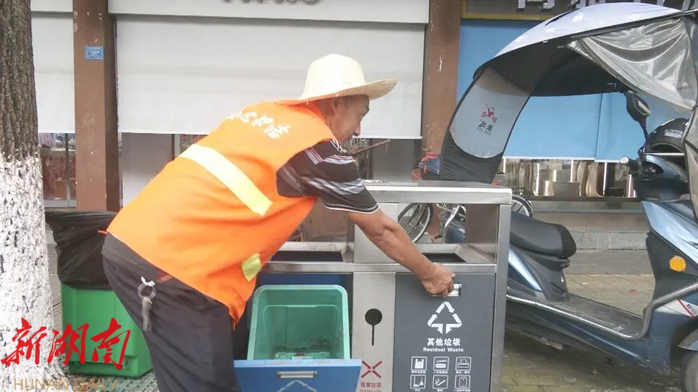在金桥市场附近的道路上,记者看到正在忙碌的环卫工人喻明科正一手提着簸箕,一手握着扫帚快速清理路上的垃圾,将沿线清扫的垃圾倒在垃圾收集车里后,又拿起了清扫工具继续开始下一路段的清扫,即使汗水湿透了他的衣服,也没有停下脚步。