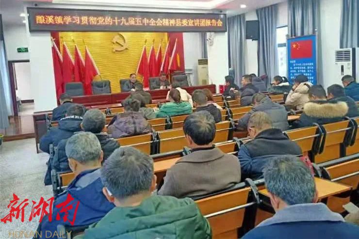 新新邵客户端12月18日讯 12月16日,新邵县委宣传部副部长、县委宣讲团成员肖山河到酿溪镇,进行学习贯彻党的十九届五中全会精神宣讲,酿溪镇全体干部职工参加。