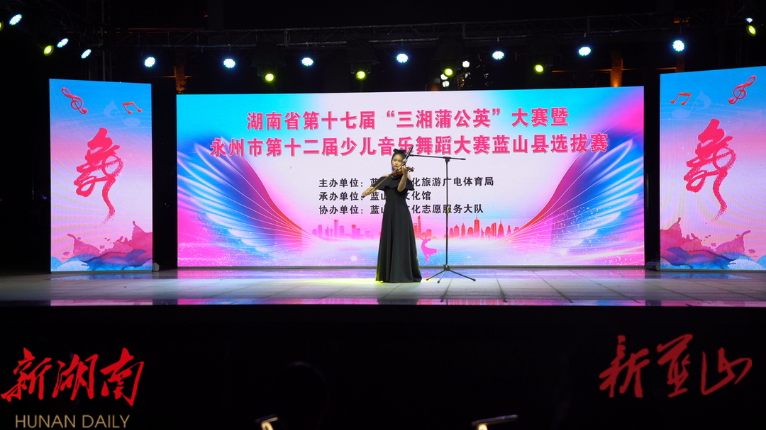湖南日报•新湖南客户端7月10日讯 (通讯员 肖兴康)7月9日晚,湖南省第十七届“三湘蒲公英”大赛暨永州市第十二届少儿音乐舞蹈大赛蓝山县选拔赛在三蓝广场举行。