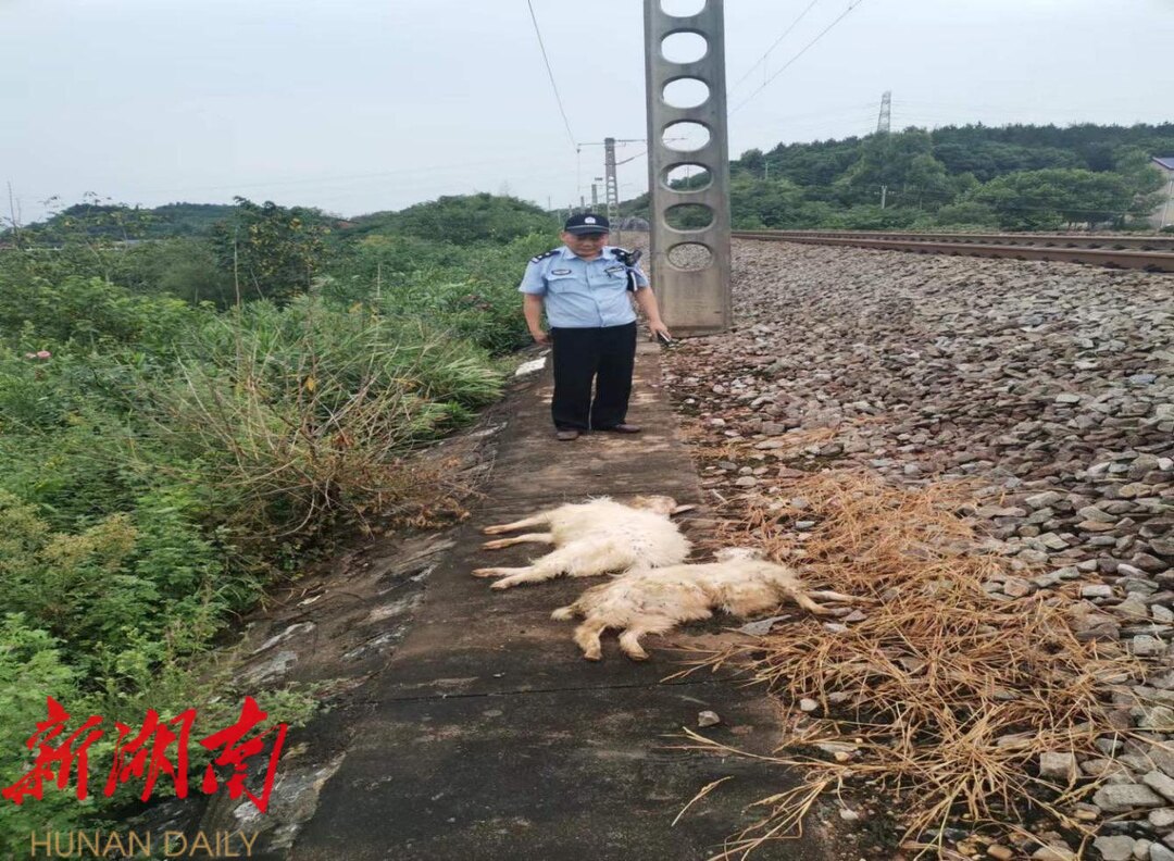 衡东融媒7月13日讯(融媒体记者 边冬宇 通讯员 刘立山 胡槟)近日, 石滩乡女护路队员肖淑英巡线时,发现吉衡线下行k280十700处一群山羊正穿越铁路行走,危及火车行车安全。见状,肖淑英跑上前将羊群极力驱赶出铁路栅栏外,而此时快161次列车呼啸而来,5只山羊因躲避不及被当场碾压致死。随即,肖淑英立即向衡兆派出所报告,并将死羊尸体搬离铁轨放置安全地带。