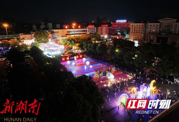 图:衡阳火车站广场缤纷美食集市灯光璀璨。