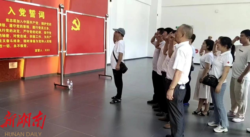随后,全体党员在夏明翰党性教育基地,在鲜红的党旗下肃立,高举右手,庄严宣誓。通过重温入党誓词,进一步激发全体党员传承烈士精神,凝聚前行动力的高昂热情。