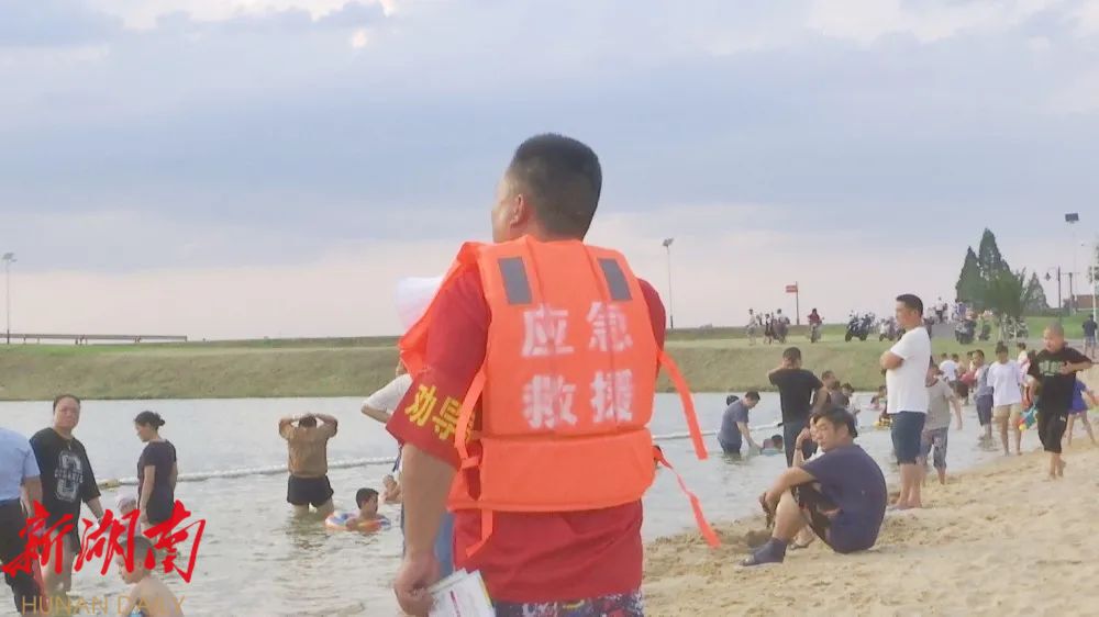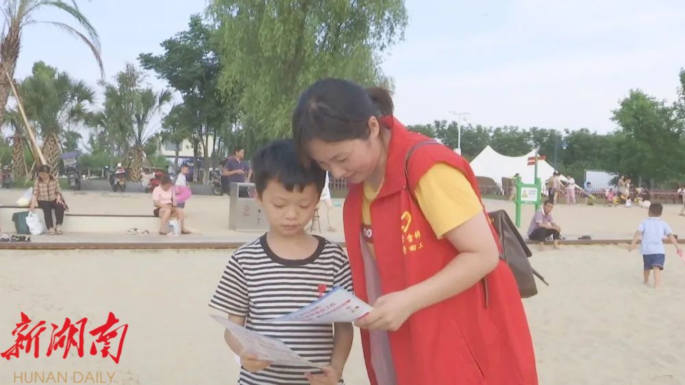 活动现场,金凤街道干部职工将防溺水知识宣传单递到在沙滩公园游玩嬉戏的家长、孩子们手里。劝导家长及孩子不要在河边嬉戏打闹,同时帮助孩子们认识到溺水事故的严重危害性,增强他们识别险情、紧急避险能力。巡逻劝导员拿着扩音喇叭在水边巡视,提醒游泳的群众主动远离危险区域,防止溺水事故发生。