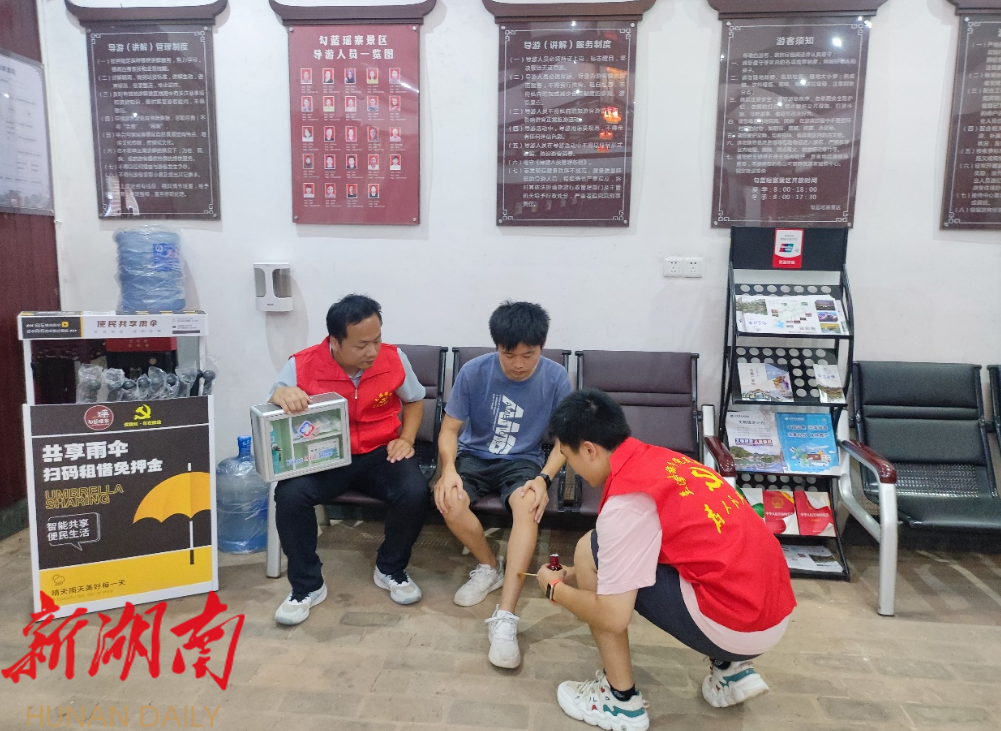 新江永客户端讯(通讯员 何俊喆 何誉 高东)7月14日,“自从有了‘党旗红·乐在旅途走心驿站’后,游客不仅能在驿站休息补水,同时还能租借共享雨伞、移动电源等物品,以后终于不会被投诉说只为一位状况游客服务了。”勾蓝瑶寨景区导游欧阳春婷开心地说道。