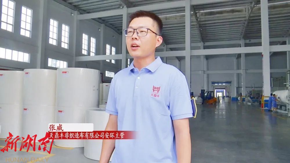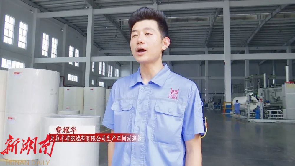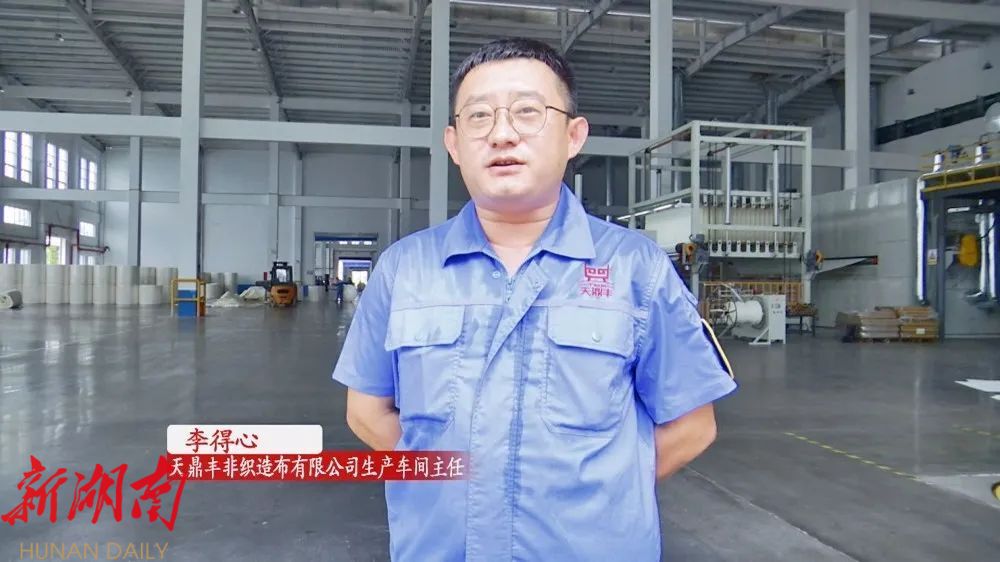 天鼎丰非织造布有限公司生产车间主任 李得心:我们其实平时作业温度就比较高,特别是一到了夏天,温度就更高了,每天衣服都要湿好几遍,虽然天气炎热,但是我们都会加班加点工作,保障订单的顺利完成,顺利交付。这也是对客户、对自己、对公司、对产品负责嘛。