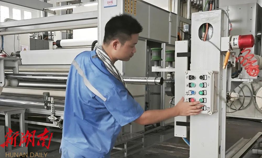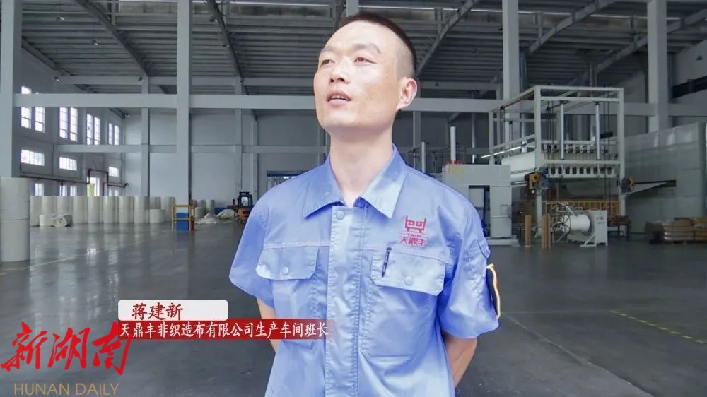 天鼎丰非织造布有限公司生产车间班长 蒋建新:我的工作主要是负责生产线的稳定生产以及整个班组的人员协调和安全。每天我们的衣服要湿好几遍,但是为了保证生产,一丝也懈怠不得。