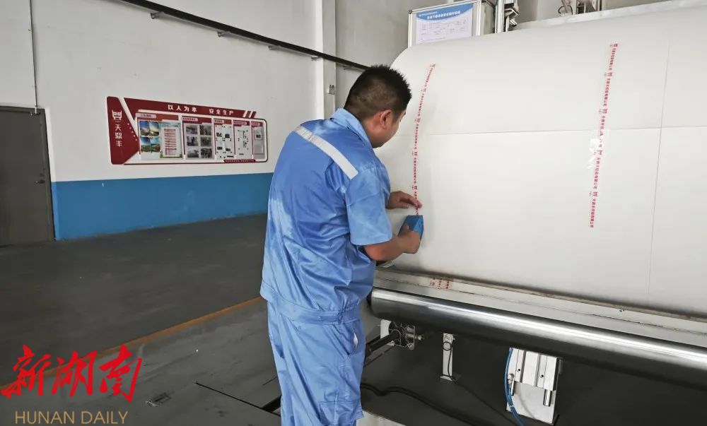 记者走进天鼎丰非织造布有限公司生产车间,车间 “热气腾腾”,气温高达近50度,工人们身上的工作服被汗水一遍遍浸透、又一次次被高温烘干,只留下一片片汗碱汇成的“地图”。他们默默付出,坚守岗位,不畏酷暑,确保生产车间安全有序运行。