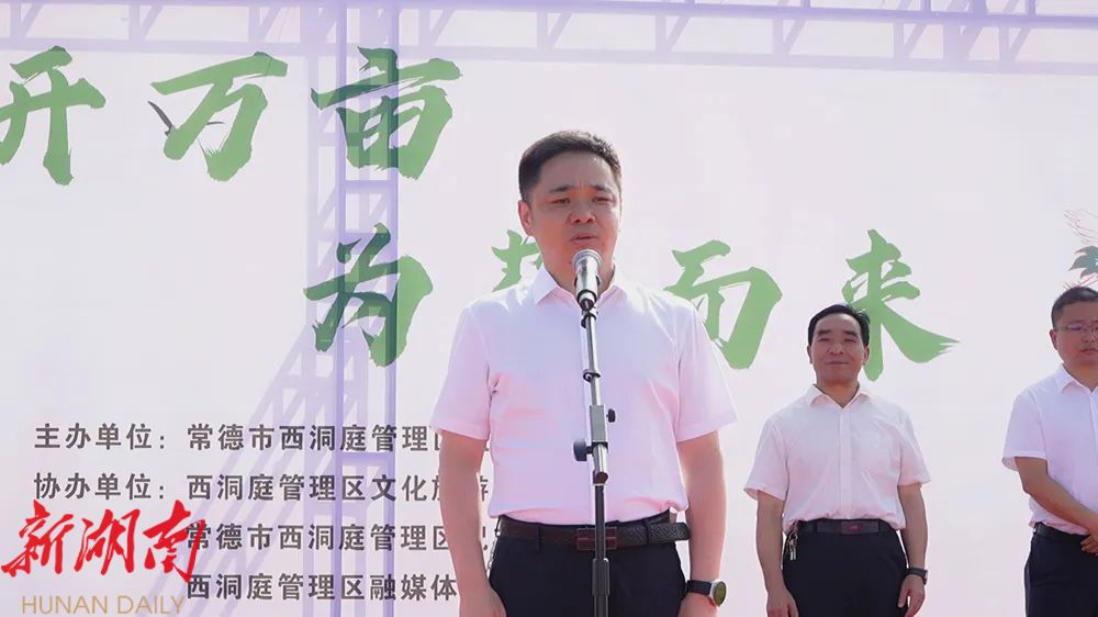 郭蕾代表区党委、管委对莅临开幕仪式的各位领导、各位来宾表示热烈的欢迎和衷心的感谢,并预祝荷花节圆满成功。郭蕾真诚希望各级领导、各界朋友认识西洞庭、结缘西洞庭,感受与众不同的精彩;热烈欢迎在外发展的乡贤游子关注西洞庭、常回西洞庭,参与推动家乡高质量发展;热忱期待越来越多的商客选择西洞庭、投资西洞庭,与西洞庭人民携手共创美好明天。