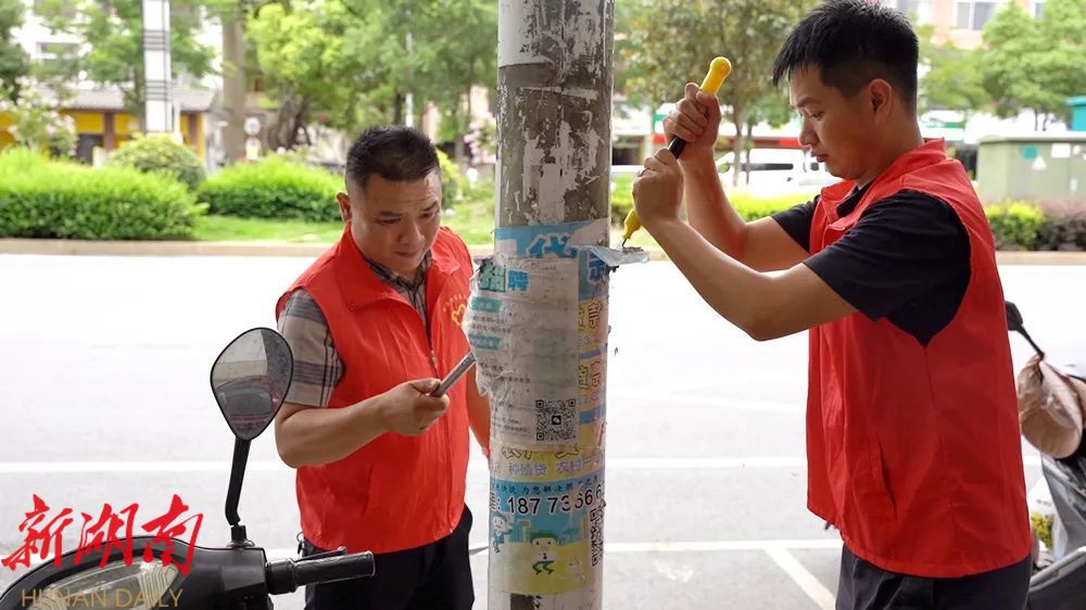 同时,志愿者还向周边居民及商铺进行文明劝导,号召居民一起行动起来,劝阻乱贴小广告等不文明行为,并重点针对门店存在的乱堆乱放、出店经营、临街晾晒、卫生脏乱、乱停乱靠等不文明行为进行整治。