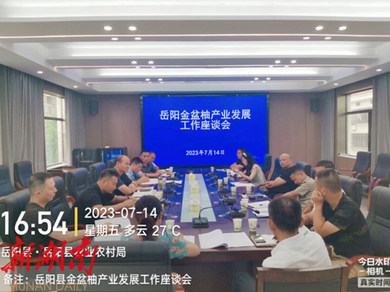 湖南日报·新湖南客户端7月17日讯(通讯员 张斌) 7月14日,岳阳县现代农业产业发展办公室组织召开岳阳金盆柚产业发展工作座谈会,岳阳县农业农村局、湖南岳阳台湾农民创业园 、岳阳县自然资源局、岳阳县林业局、岳阳县金盆柚种植协会和相关乡镇企业负责人参加。