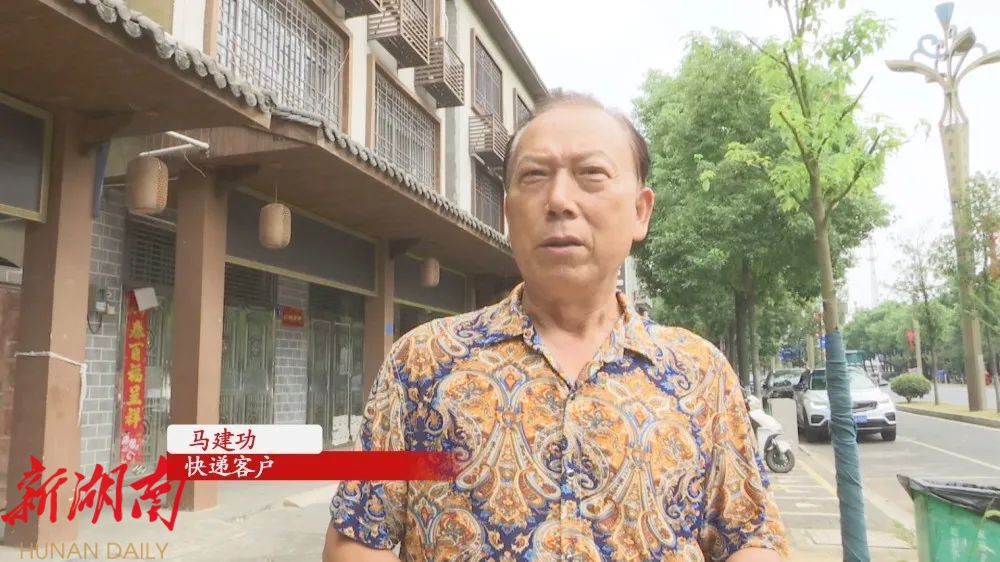 快递客户马建功:这个送快递的小李服务还是蛮周到的,也很辛苦,现在这个温度比较高。平时只要打一个电话,快递就送过来了,现在气温也比较高,希望他们好好地保护身体。