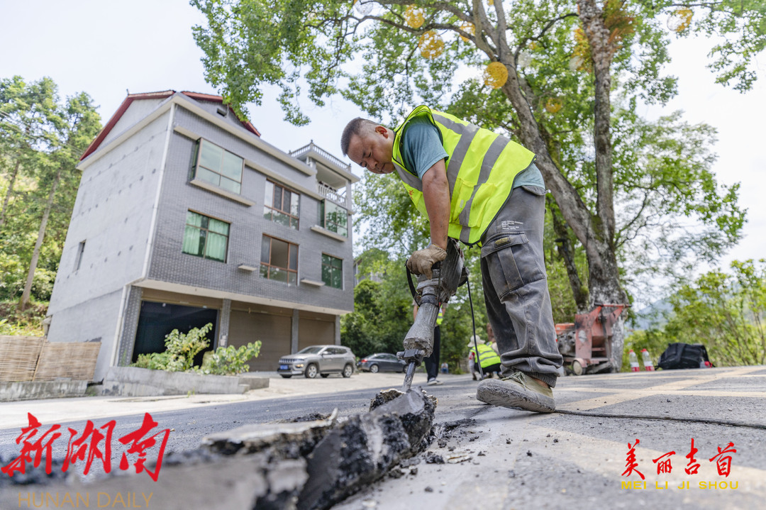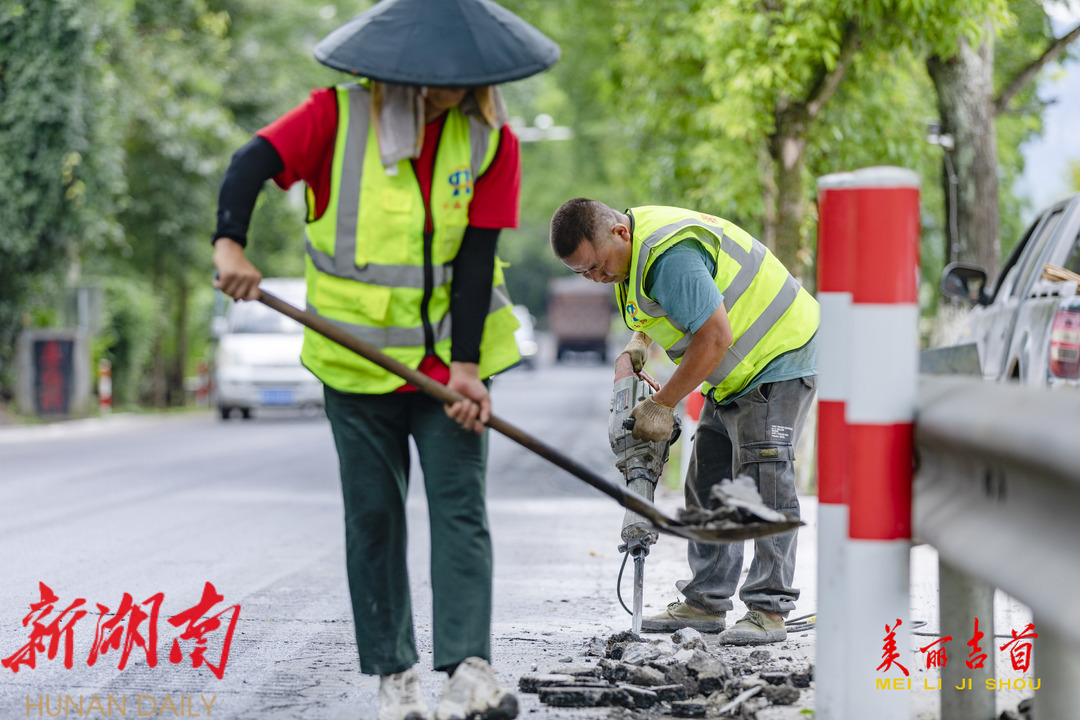 7月17日,吉首市石家冲街道寨阳村,养路工人在烈日下对G209国道进行应急养护工程作业。入夏以来,为做好吉首市夏季公路养护工作,组织养护工人奋战一线。他们用汗水呵护道路“颜值”,确保道路安全畅通,让群众出行更安全。