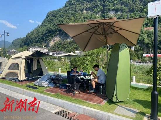 “我们一家四口是来武陵源自驾游的,感觉这里环境很好,白天欣赏武陵源绝美风景,晚上搭着帐篷在这里休息,不仅晚风凉爽宜人,还能欣赏河畔的美丽风光。”来自浙江的何先生高兴地说。