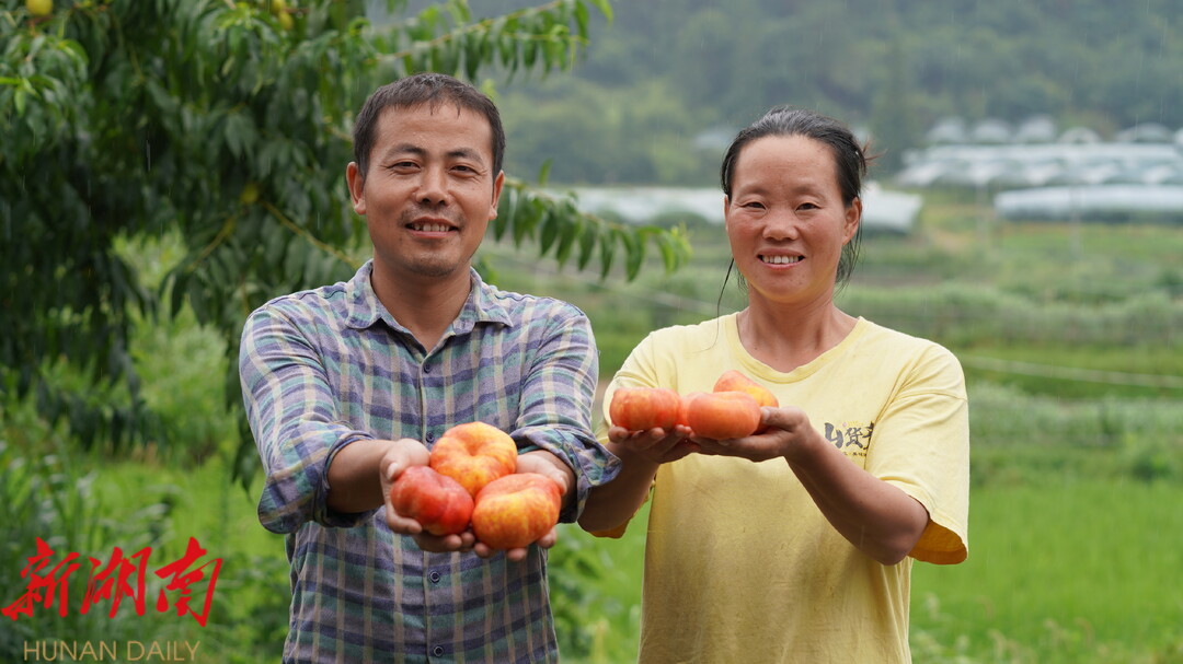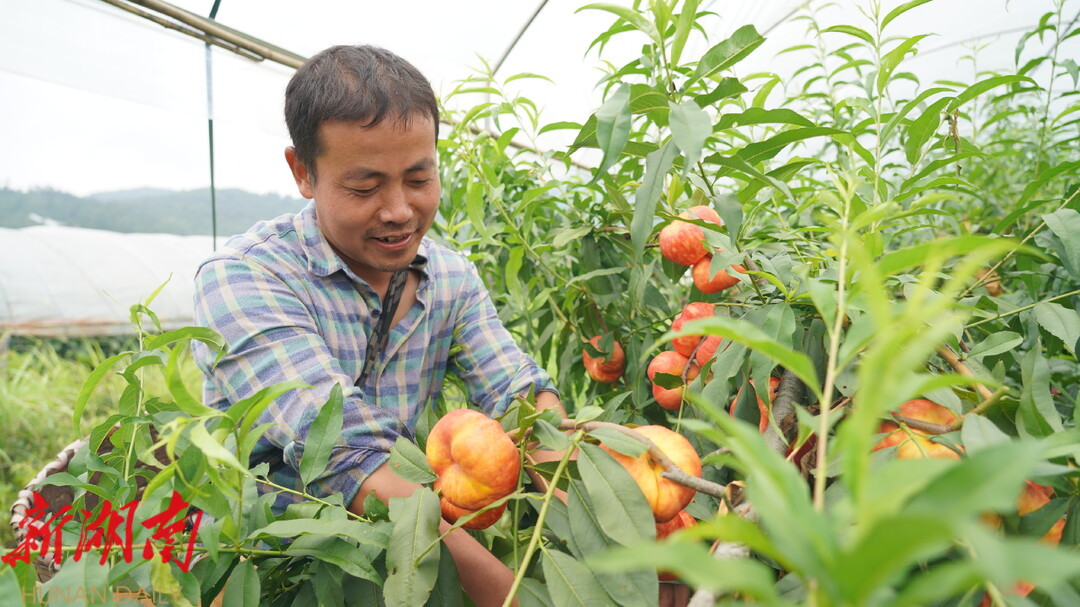 2017年,杨华回乡后开始种植高山葡萄。2018年,为了追寻多季多品种水果错峰上市,他开始种植黄桃、油蟠桃和冬桃。 “以前我们都是露天种植,露天种植的话基本上看不到上品果,不是掉袋了,就是雨季被淋烂了,还有后期被鸟啄烂的。”杨华笑着说,“我们一步步地摸索,2021年,我们就给果树盖上了避雨大棚,明年还要加装防鸟纱帐。”