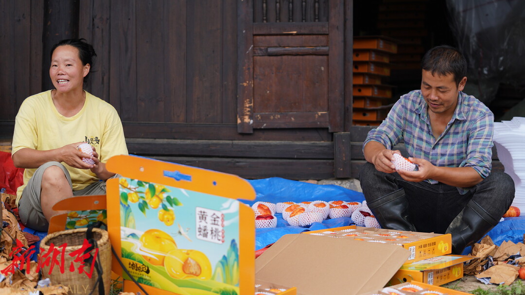 中方融媒7月19日讯 “我们回来的时候,最开始种的是湘珍珠葡萄,有10多亩,种了几年后又开始陆陆续续地种一些蟠桃、冬桃之类的。”7月18日,记者在中方县花桥镇排叶村见到了正在自家果园里忙碌的返乡大学生杨华,只见他背着一个大篓子,麻利地将已经9分熟的油蟠桃从树上摘下来,现摘现打包发货。