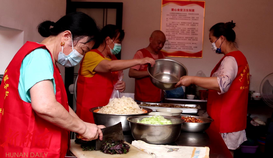 广泛征求意见后,目标有了,路径也变得清晰起来。爱心食堂为居住在社区的80岁以上的老人、一线环卫工人、特困残疾人等特殊群体提供爱心午餐。行动不便者,由志愿者送餐上门。考虑到老人的身体状况,以素菜为主,每餐至少四菜一汤。当天,食堂就精心为老人准备了辣椒炒香干、小炒茄子、清炒藕片等。“有的老人不吃辣,我们会单独给他们留出来,满足他们的需求。”在厨房里帮忙的志愿者刘顺香笑着说。