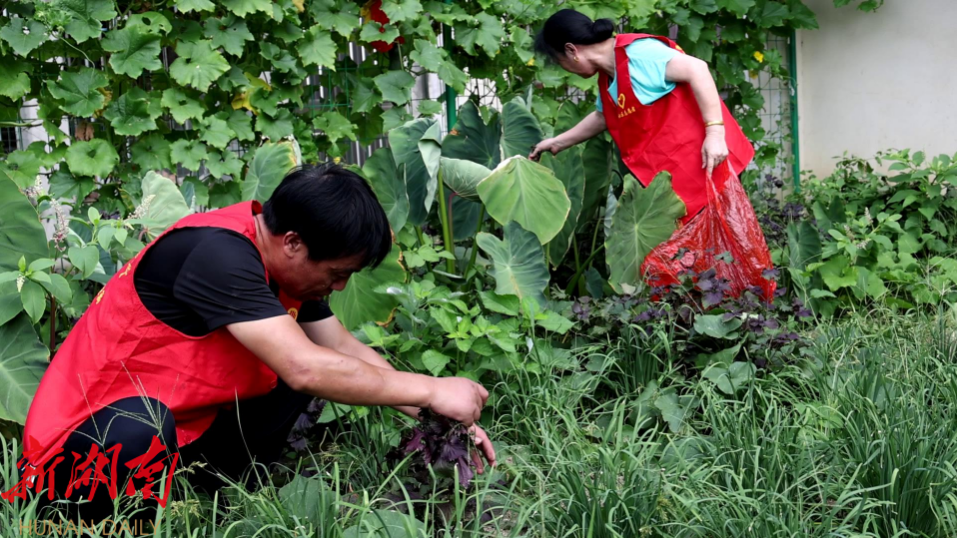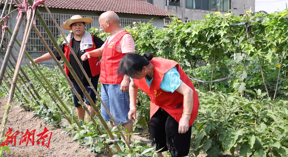 胡赛军带着队伍来了,多次受过社区帮助的李霞普充当主力。开园、挖土,汗一身,泥一身,他从无怨言。刘顺香是巾帼不让须眉,不管什么事,都干。有次,她在菜地里忙,不小心摔倒了,导致骨折。身体刚恢复了一些,她不顾家人的阻拦,又出现在菜园。还有一位毛辉群大姐,从山上砍来竹子,给丝瓜、豆角搭起架子。李正喜也是不吝惜力气,浇水、除草、捉虫,都是一把好手。“从住地,到菜园,骑单车要二十来分钟。夏天气温高,我们早早就过来给菜浇水、松土、施肥等,大家说说笑笑,有时还唱几首歌,这生活蛮有意思。”常人眼里的苦差事,却成了胡赛军等人的乐事。在他们的坚持与努力下,菜园子青绿一片,长势喜人,有苦瓜、辣椒、茄子、豆角等近20个品种。“去年,我们尝试着种了些红薯,没想到,一根藤结了几十斤,我们高兴坏了,围着又笑又跳。”胡赛军言语里颇有成就感。