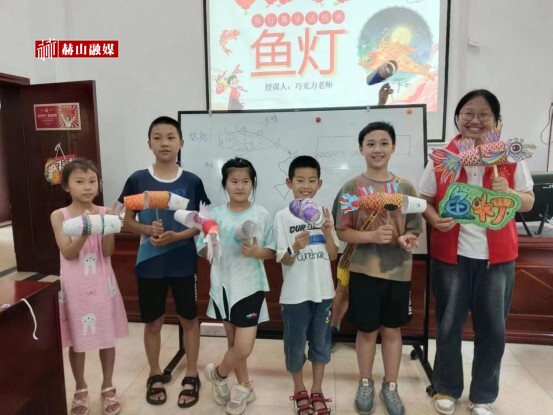 手工制作时刻,孩子们拿起工具,用双手制作出属于自己的鱼灯。从剪出鱼身,画出鱼灯图案,再到上色,最后由老师帮助拼接成鱼灯,在此过程中孩子与老师的脸上都洋溢着灿烂的笑容,一张张照片定格下了孩子们与传统文化的特别邂逅。天马行空的创造与传统鱼灯文化发生碰撞,赋予传统“鱼”文化新的生命力,让鱼灯文化“活”了起来,志愿者们纷纷表示这是一次非常有意义的经历。