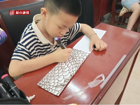 “鱼有着怎样的寓意呢?”“老师我知道,鱼儿寓意着‘年年有余’!”。7月11日,银东社区的志愿者们以“鱼灯舞里话传承”为主题引导孩子们走近鱼文化,老师结合有趣的故事以及精湛的手工技艺,声情并茂地讲述古老的鱼文化,激发孩子们对鱼文化的浓厚兴趣。课堂上,孩子们积极举手与老师共同探讨传统艺术文化的价值与意义,现场气氛十分热烈。