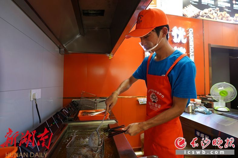 陈益森在一家炸鸡店找到了工作,干活十分卖力。均为长沙晚报全媒体记者 邓迪 摄