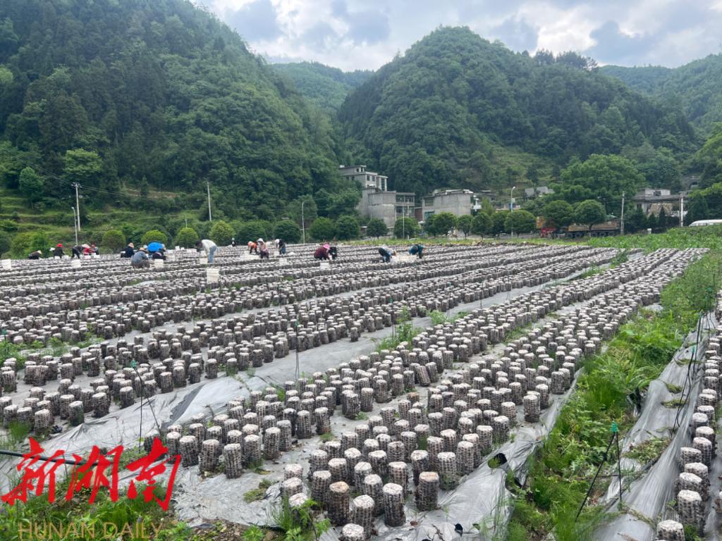 在织金县双堰街道桂花村的木耳基地,农户正在采木耳。新华社记者刘智强 摄