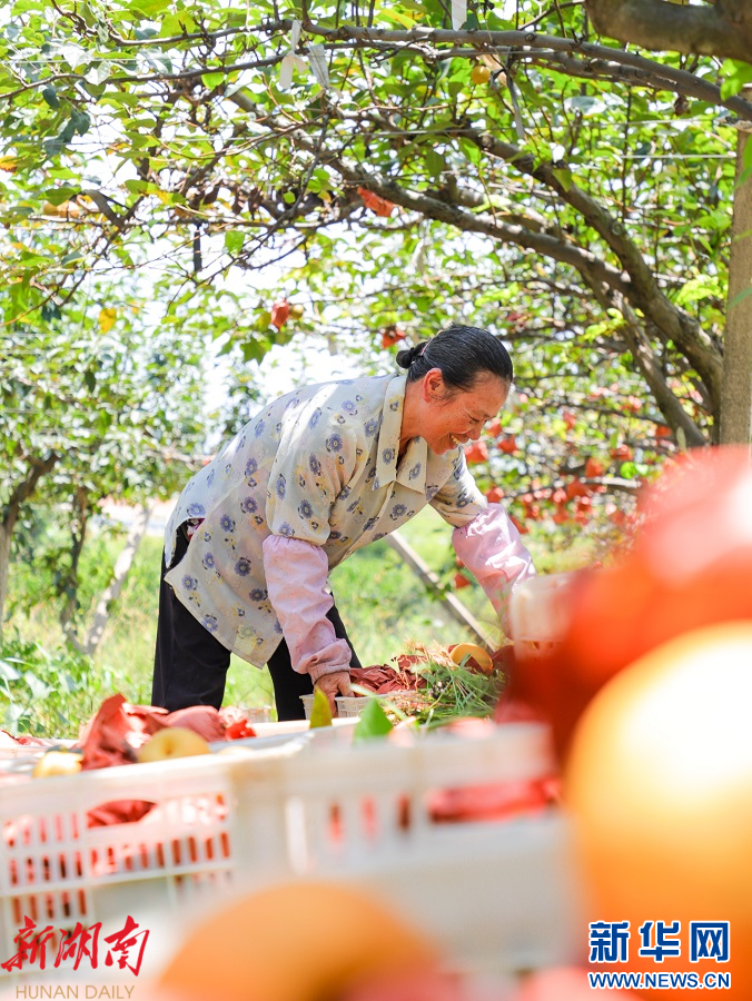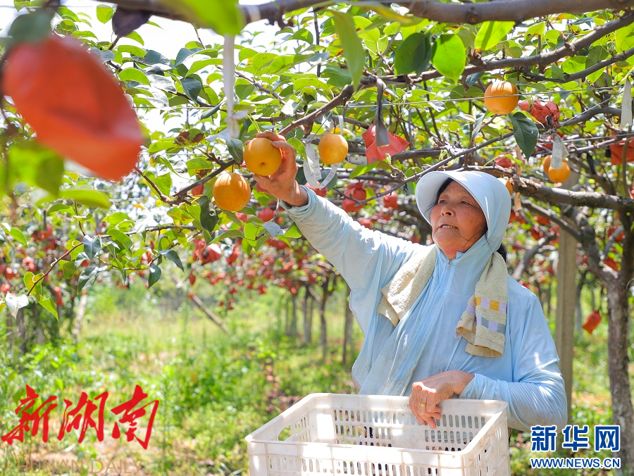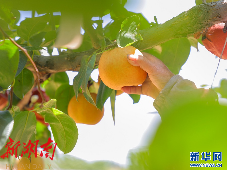 在江西省金溪县,农户正在采摘蜜梨。新华网发