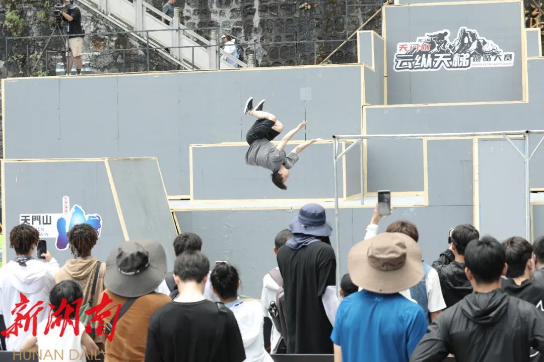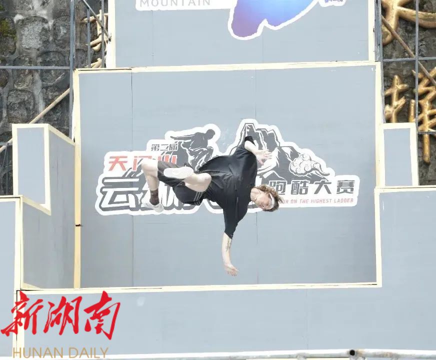 湖南日报·新湖南客户端7月23日讯(记者 樊文婷 全校莹) 7月22日,第二届天门山“云纵天梯”跑酷大赛技巧和竞速预赛开赛,国内外80余名优秀跑酷运动员参赛,挑战天门洞“天梯”赛道。