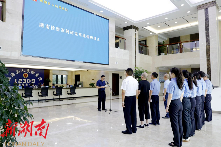 7月20日,湖南检察案例研究基地揭牌仪式在桃源县人民检察院隆重举行。湖南省检察院法律政策研究室主任王国忠,综合指导科科长刘伟;常德市检察院专职检委阙兴中、法律政策研究室主任王华锋等领导出席活动。桃源县检察院党组副书记、副检察长朱强主持会议,全体班子成员及二层骨干参加活动。