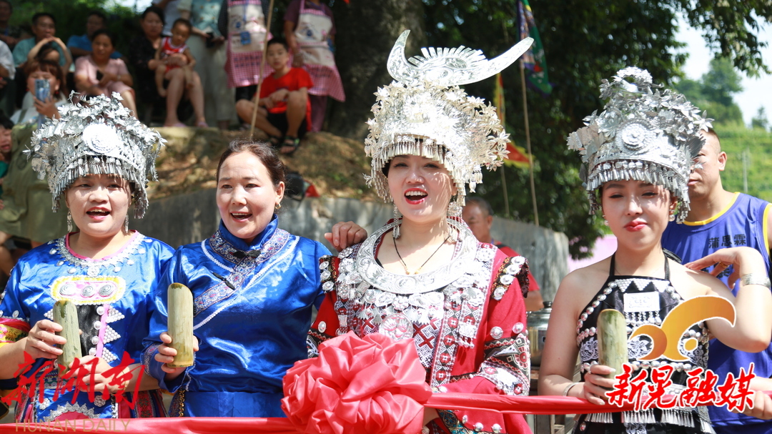 7月23日,农历六月初六,米贝苗族乡烂泥苗寨彩旗飘扬,锣鼓喧天,热闹非凡,苗寨群众与四方游客欢聚一堂,赏表演、观民俗、品苗寨风情,欢度“晒袍节”。