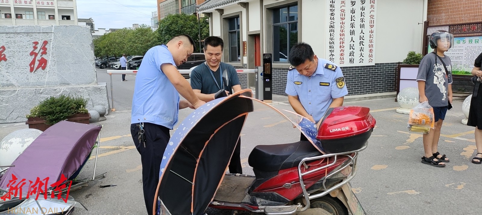 湖南日报·新湖南客户端7月25日讯(通讯员 吴琪 ) 为持续抓好道路交通问题顽瘴痼疾集中整治,进一步规范“摩电”车辆通行秩序,连日来,长乐镇应急办联合镇综合行政执法大队、交警大队长乐中队在集镇、村(社区)主干道开展摩托车、电动车交通违法行为专项整治,引导摩托车、电动车骑乘人员自觉佩戴安全头盔、不加装晴雨伞具、不违规载人。截至7月23日,联合行动已扣留无证无保险摩托车、电动车100余辆,拆除非法加装伞具200余把。