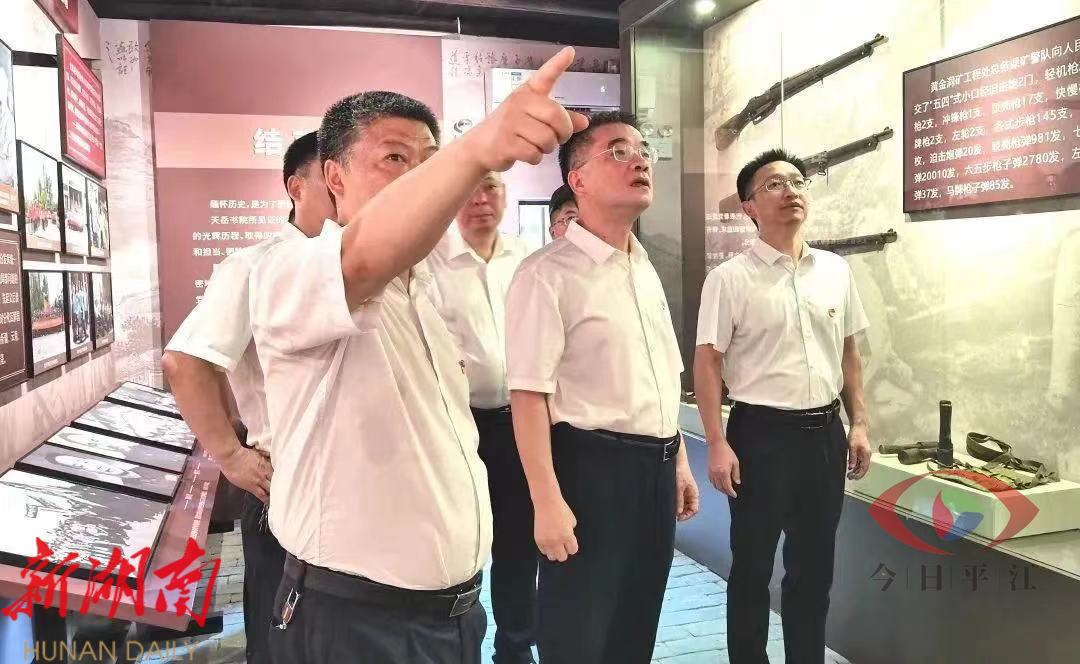天岳书院是平江起义旧址。敬献花篮仪式结束后, “浴血奋战 百折不挠——新民主主义革命与天岳书院展”开展仪式随即在天岳书院举行。县委书记李勇,县委副书记、县长彭方建,县领导鲁勇、凌晓明、熊江新、田浩、郭兴义共同为本次展览揭牌。随后全体在场人员一起参观了本次展览。