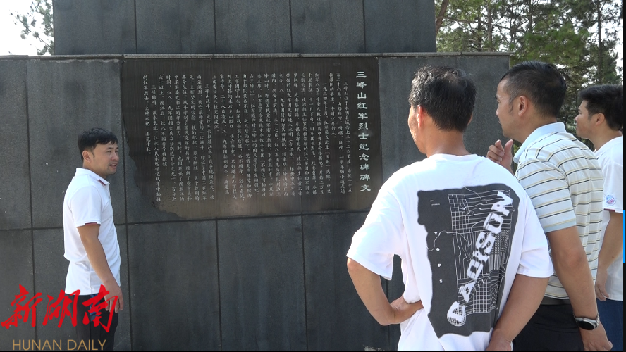 活动中, 县 融媒体中心 支部党员来到 刘家庄红色教育展览馆、三峰山红军烈士纪念碑等地,通过重走英雄足迹、 参观红色教育基地 等, 进一步学习了解关于 红军长征 在 过永明时红八、九军团激战三峰山 的故事 , 接受革命精神洗礼续奋斗之志。