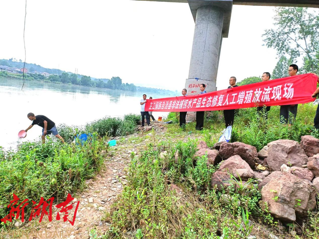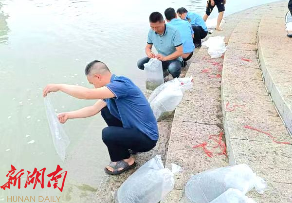 湖南日报·新湖南客户端7月26日讯(通讯员 江满平 唐文高 杨志桂)“今天,我们开展非法捕捞水产品生态修复人工增殖放流鱼苗活动,往㵲水河里放流鲢鱼、鳙鱼等鱼苗,持续开展好禁捕、修复水生态工作。”日前,芷江侗族自治县渔政与农机执法中队负责人宣布后,在县人民检察院、县禁捕退捕办等单位见证下,工作人员打开一个个白色的氧气袋,一尾尾鱼苗活蹦乱跳地游向河里。