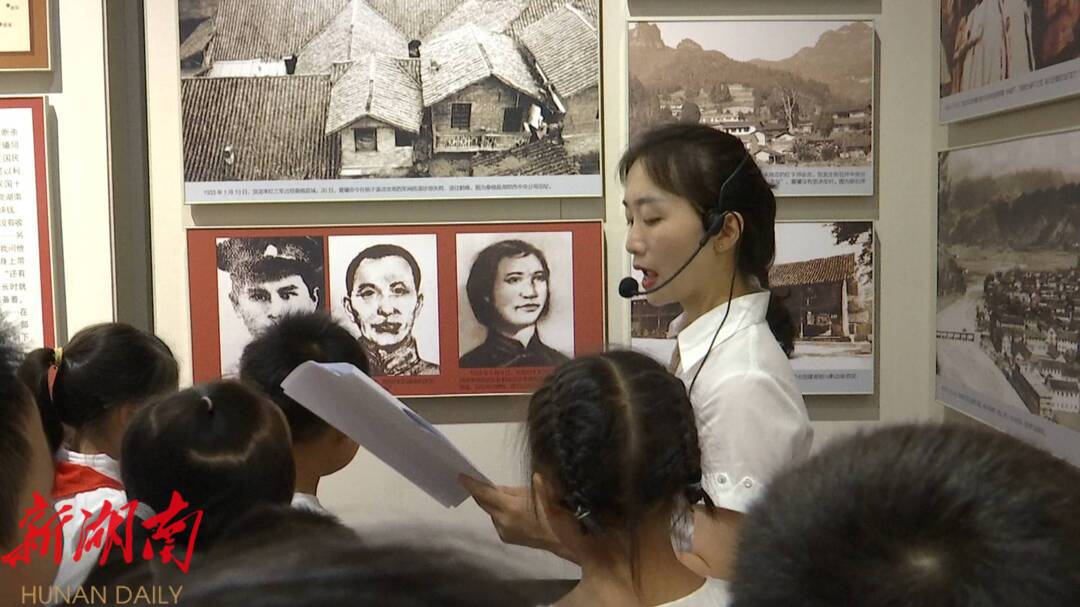 在中国工农红军第二方面军长征出发地纪念馆内,参加此次培训的小志愿者们向大家展示诗歌朗诵、民歌演唱、民族舞蹈等才艺,并由培训老师进行仪态仪表训练、讲革命故事、唱桑植民歌培训指导。随后,贺龙纪念馆讲解员进行现场示范讲解,向大家讲解贺龙元帅生平的故事,让小志愿者们对讲解工作有初步了解。