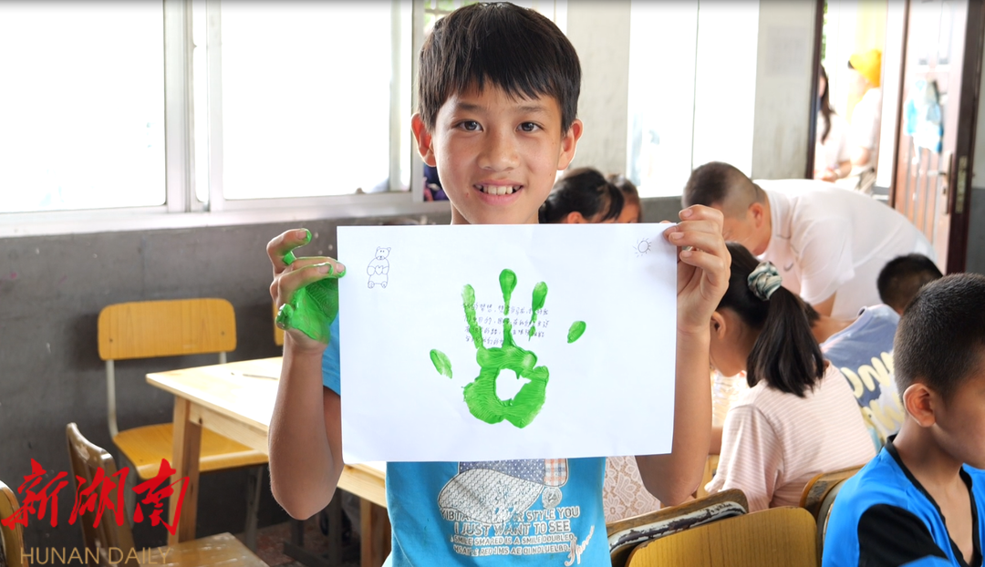 活动中,实践队员们向银杏塔村的40名孩子们送上了爱心包,里面装着文具彩色笔等学习工具,并邀请孩子们蘸取喜欢的颜色,在墙上留下七彩手印,寄托自己的美好愿望。随后,队员们开展了禁毒知识讲座,细心讲解毒品种类和鉴别方法,帮助孩子们增强保护意识,教唱孩子们桑植民歌,孩子们兴趣盎然,朗朗音乐声在教室里回荡。课堂上,队员们还与孩子们共同做手工,培养小朋友们的动手能力和耐心。