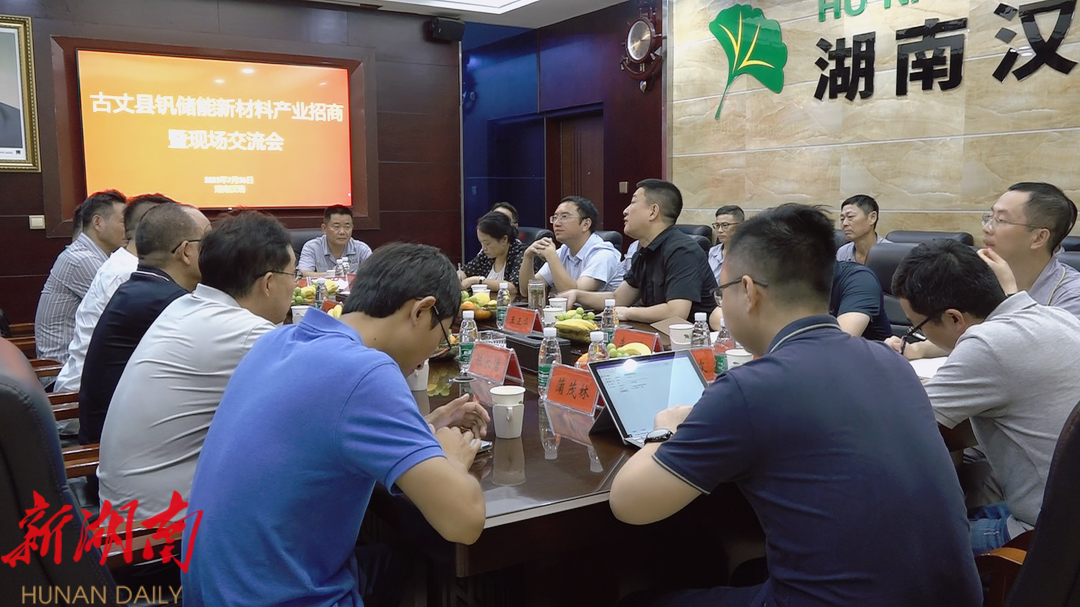 随后召开古丈县钒储能新材料产业招商暨现场交流会。会上,汉瑞公司负责人介绍公司组织架构、技术优势及下一步的发展规划。汉瑞公司将在钒电池储能需求爆发式增长的机遇推动下,依托湘西州优质资源,打造钒产品深加工能力,掌握核心钒系高科技产品技术,拓展全球市场,建成具备全球话语权的钒储能新材料产业基地。
