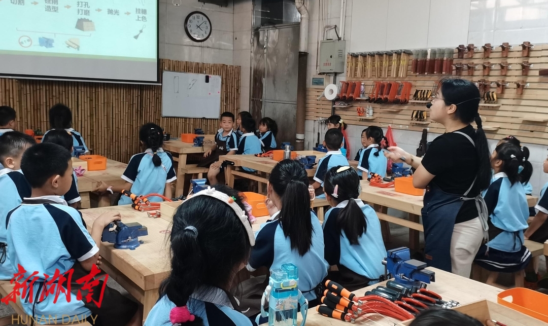 “心有所‘暑’不负所‘托’雨湖接班娃”暑期托管班木工课堂。