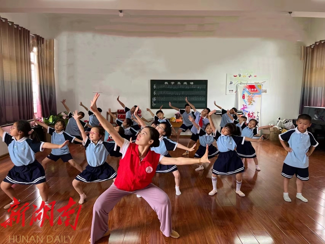 “心有所‘暑’不负所‘托’雨湖接班娃”暑期托管班舞蹈课堂。