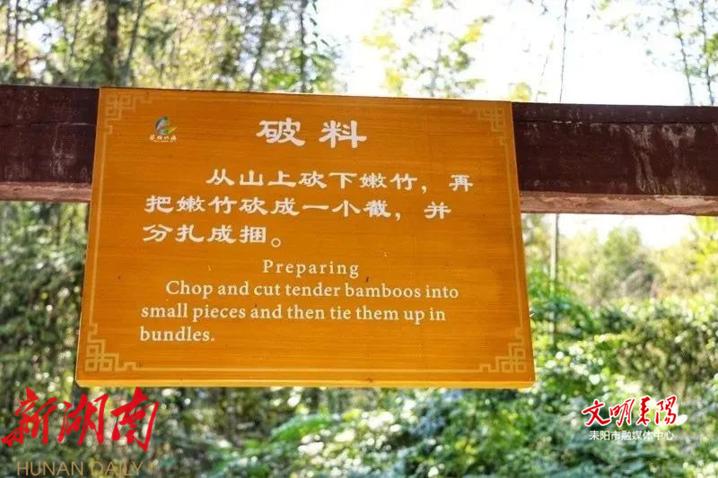 沿着先人足迹,从破料、沤料、洗料、制滑料、捣料、打槽、抄纸、分纸、晾纸等九个步骤,重温当年的蔡伦造纸。所谓的“蔡伦天下纸,竹海耒阳情”正是如此。
