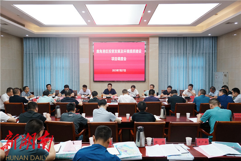 湖南日报·新湖南客户端7月28日讯(通讯员 熊佳 周星亮) 7月27日,县委书记肖湘晖主持召开鹿角港区投资发展及环境提质建设项目调度会。县委副书记、县长吴光文,县领导王靖、童勋海、贺立、胡海平、张文毅、李振宇及相关单位负责人参加会议。