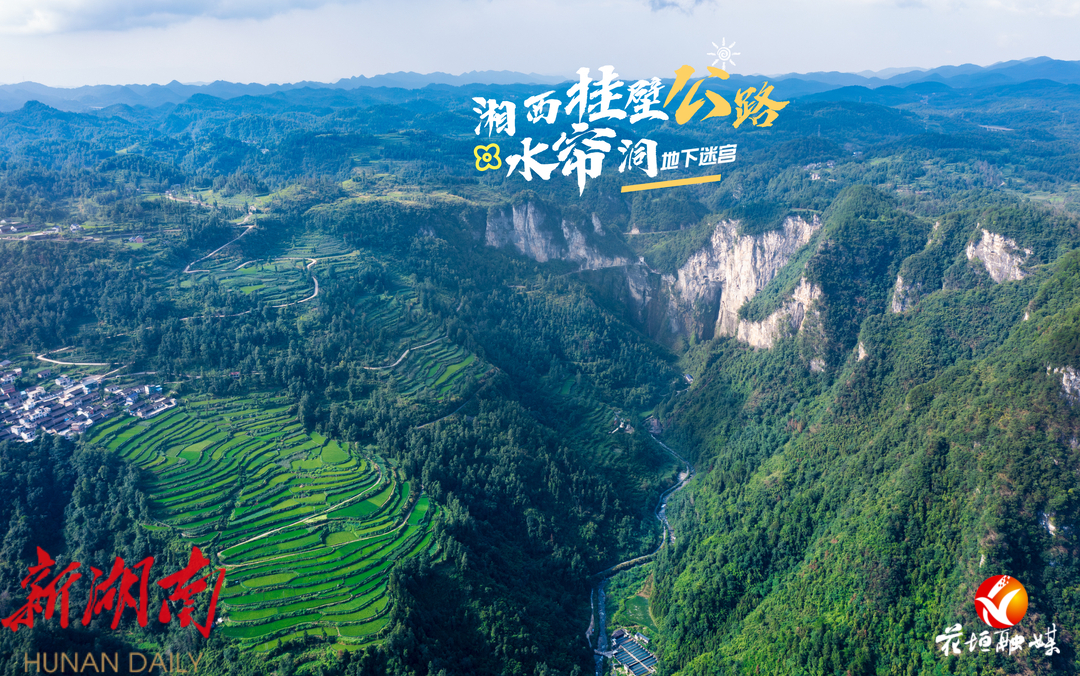 双龙镇双龙村梯田与远处湘西挂壁公路遥相呼应(本组图片均由宋显金拍摄)