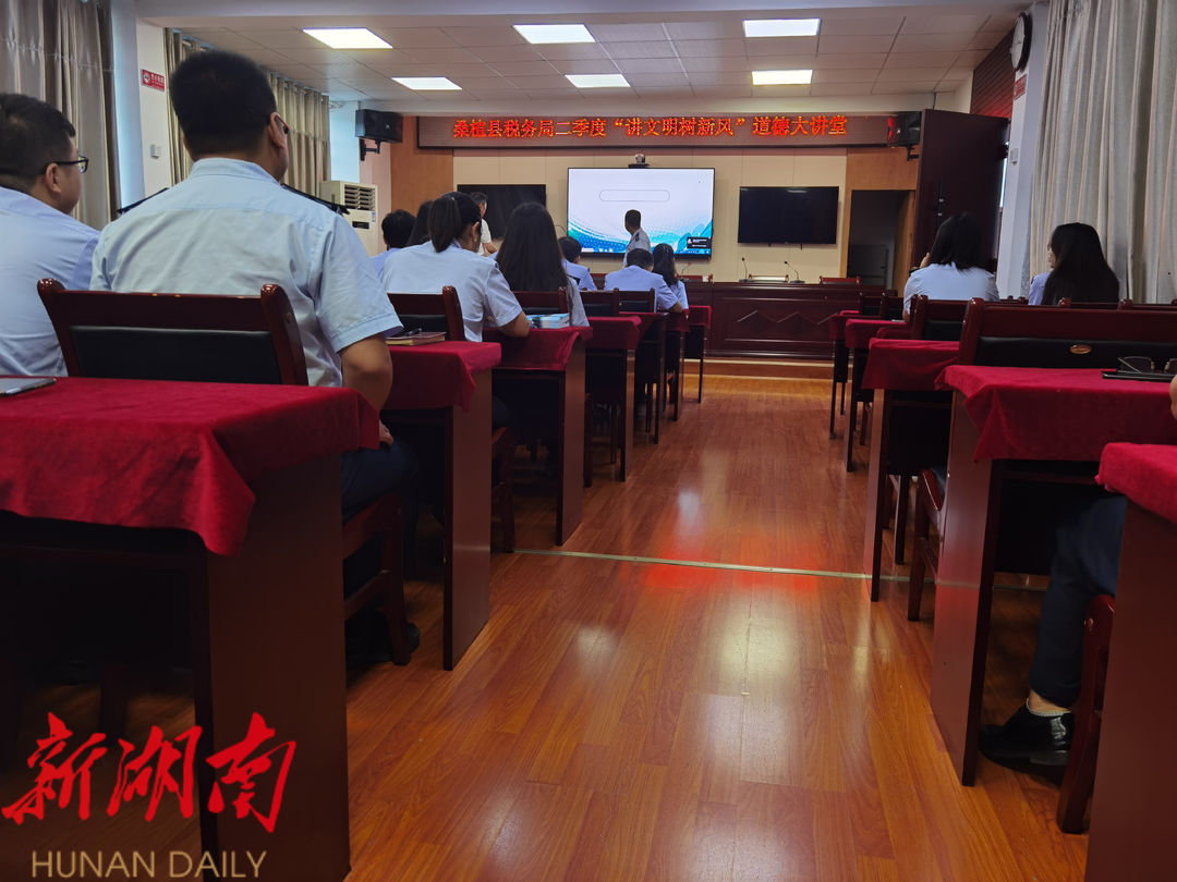 湖南日报·新湖南客户端7月30日讯 (通讯员 蒋婷冰)为深入弘扬社会主义核心价值观,营造“讲道德,做好人,树新风”的浓厚氛围,近日,桑植县税务局结合全国文明单位创建活动,举办以“讲文明树新风”为主题的2023年度第二期道德讲堂活动。