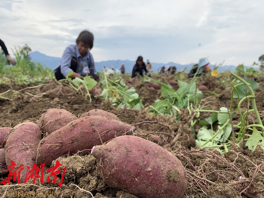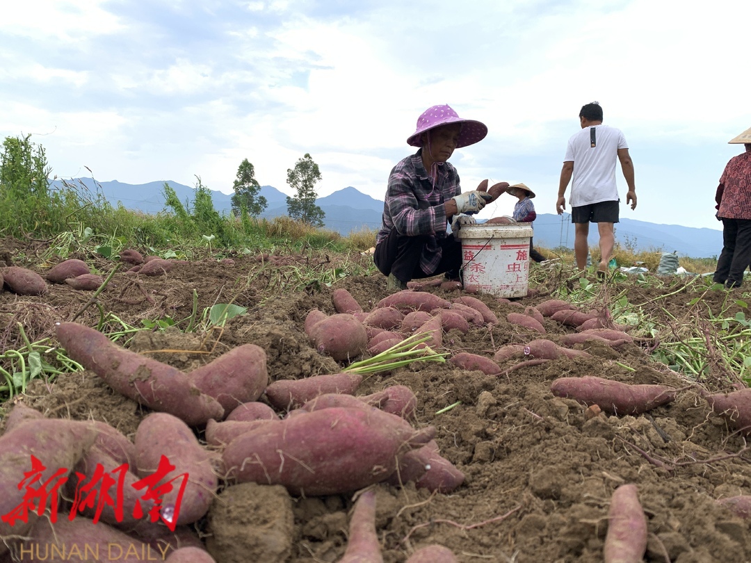 新江永客户端讯(电视台 谢文彬 陈平成 周翔)眼下正值红薯成熟的季节,江永县桃川镇建安亭村的红薯迎来上市期。村民们忙着收获成熟的红薯,抢种晚稻,一派农事忙、农业兴的喜人景象。
