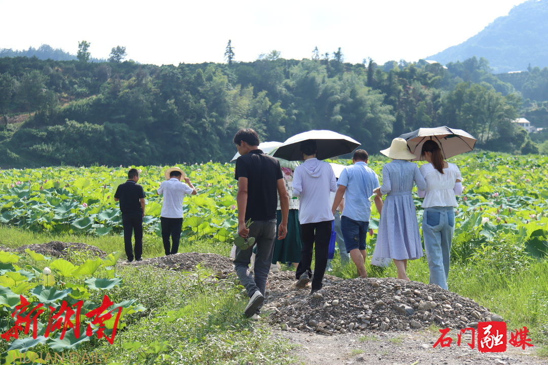 维新镇不仅围绕湘莲种植在第一、二产业做文章,还积极探索湘莲产业三产融合发展。维新镇重点发展荷花观光旅游,将千亩荷花基地与周边热水溪天然温泉、仙阳湖湿地公园、重阳古树、峡峪河红军水磨坊等景点串联起来,形成独具特色的“赏荷之旅”休闲观光路线,吸引大量游客前来游玩。同时,还大力支持建设荷花园观光游步道、观景平台等,积极打造“一园一带一区”格局,即仙阳湖荷花生态观光园区、观光园区绿化休闲背景带、荷花生态农业经济产业区,尽可能将荷花产业与维新镇现有农业产业相结合,做到互补互用,实现农业生产与旅游产业的有机结合和农业综合收入的最大化,打造湘西北旅游名片。