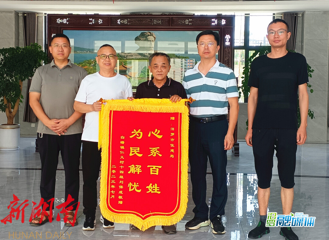 湖南日报·新湖南客户端8月1日讯(通讯员 夏凡 潘亚男)“心系百姓,为民解忧。”近日,汨罗市白塘镇仁义村十四组村民刘保成将一面锦旗送到汨罗市住建局,感谢该局积极为他完成了危房改造,让他住上“安心房”。