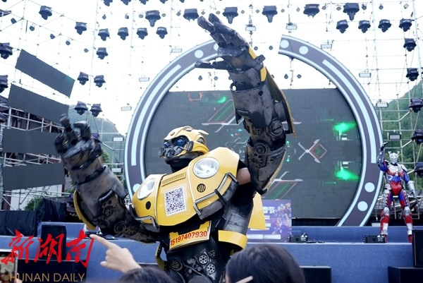 高大的机甲人随着动感音乐搭配欢快舞步,魔性十足。