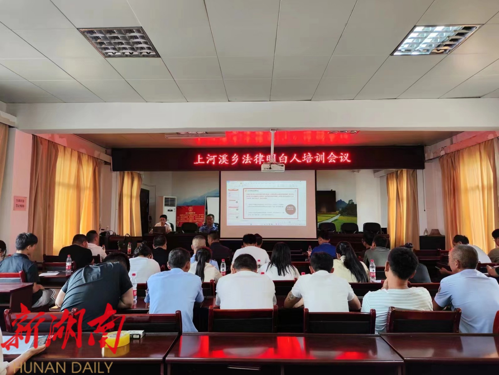 湖南日报·新湖南客户端 8月2日讯(通讯员 印芳)近日,由上河溪乡司法所联合湖南厚钦律师事务所举办的“法律明白人”培训班开班,各村书记、副书记、辅警以及大学生志愿者,共计40名“法律明白人”代表参加培训。