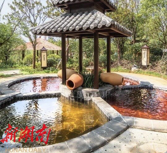 湘·江南温泉项目坐落于衡东县杨桥镇温泉新村,背靠风景秀美的凤凰山,坐怀仙鹤岭,度假村建有一个五星级标准的温泉度假酒店、一个衡东本土文化美食及现代风情的商业街和一个4A级标准的温泉公园,建筑面积约600亩。内部山、湖、街景通览,现代和传统风格相融合。40多个大小不一、风格迥异、功能各式的泡池分散在温泉公园之中,从地下400米深处涌出的汩汩泉水,富含硒、氡、锶等微量元素,适宜的温度可以让你放松身心,驱除一身疲惫。